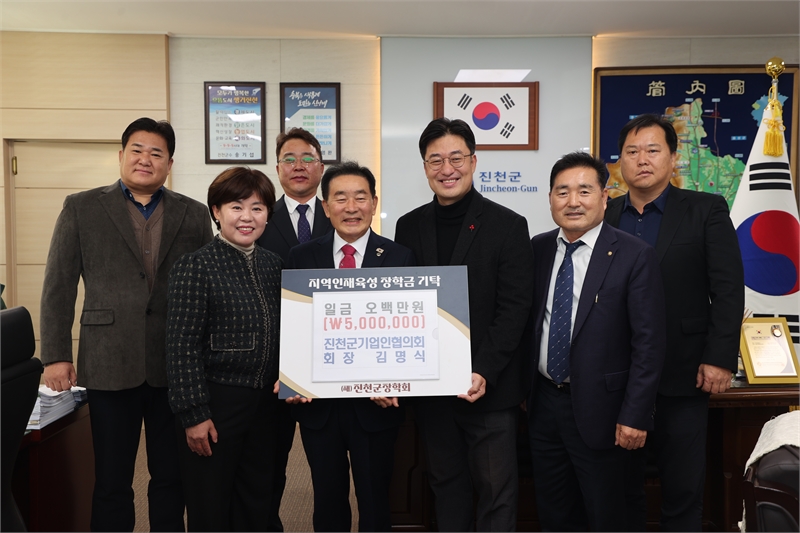 The Jincheon-gun Business Association in Chungbuk donated 5 million won to the Jincheon-gun Scholarship Foundation on the 5th. The Jincheon-gun Business Association decided to make this donation to discover local talent and improve the educational environment. Chairman Kim Myung-sik of the Jincheon-gun Business Association and executives attended the delivery ceremony.