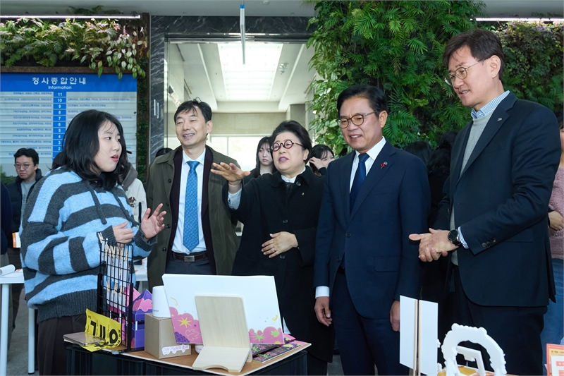 Report session attendees included Deputy Mayor Kim Seok-pil (Acting Mayor's Authority), Sangmyung University President Kim Jong-hee, and approximately 40 professors and students. Deputy Mayor Kim Seok-pil said, "I expect students' creative proposals to bring new vitality to city government," and "We will continuously expand cooperation models where local communities and universities grow together." The achievement exhibition will proceed at City Hall Lobby through the 12th.